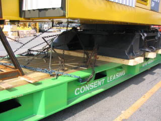 我々は、「マフィー」と呼んでいますが、まな板のようなトレーラーで、上の写真でもタイヤが少し見えると思います。運ぶ時はタイヤの付いていない側を持ち上げて牽引します。
