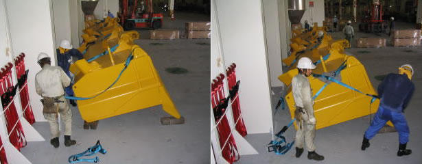 従来のように、「コンパウンドロープ」と「締め棒」を使っての固縛では、このように短時間での作業は不可能です。