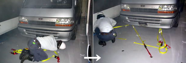 ワイヤーやチェーンを使った固縛法では、絶対にこのように早くはできません。